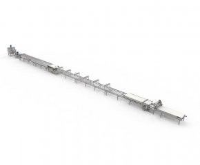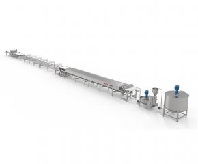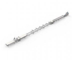 概要信息:自動化鮮河粉生產線采用攤漿蒸熟工藝原理制造。適用于非發(fā)酵工藝,熟化度98-100%,水分60-64%,厚薄度1.2-3mm,寬窄5-20mm鮮濕河粉的生產。本產線具備成熟而完備的磨漿、調漿、布漿、蒸熟、冷卻、切條工序,各工序,自動化集成度高。