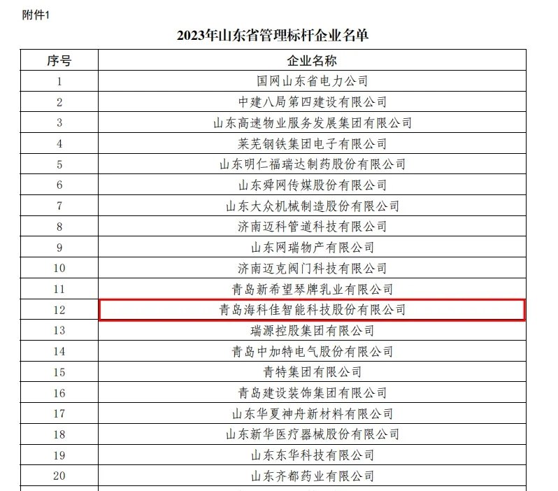 近日,山東省工業(yè)和信息化廳公示了山東省管理標(biāo)桿企業(yè)和山東省企業(yè)管理優(yōu)秀成果名單,青島海科佳憑借多年來形成的科學(xué)規(guī)范、系統(tǒng)完善、高效運(yùn)行的現(xiàn)代企業(yè)管理體系,成功獲評2023年山東省管理標(biāo)桿企業(yè)。