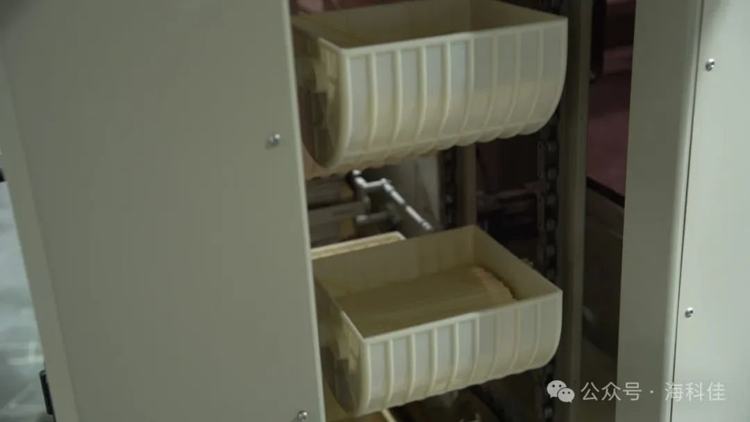 散面從切斷機(jī)或者跨層輸送系統(tǒng)輸送至理料分料機(jī),分成一斗一斗輸送,不受角度影響,可短距離提高至2米左右空中,實(shí)現(xiàn)長(zhǎng)距離輸送。