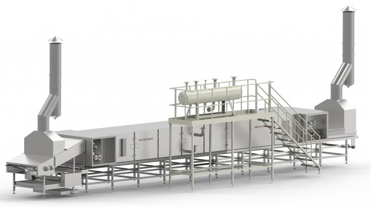 ◆分三層進(jìn)氣,每層前后進(jìn)氣,上中下層間的氣密性較好,采用低壓蒸汽源可大量減少能源消耗(每1000Kg成品蒸汽消耗約350-400Kg,a80%以上),內(nèi)部安裝清洗噴頭和潤滑噴頭。