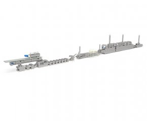 ◆面片由面刀縱切成條后垂直落入波紋成型盒內(nèi),經(jīng)成型盒下短網(wǎng)帶的慢速輸送形成波紋